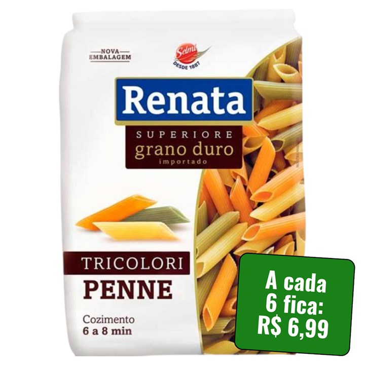 • 1 embalagem Macarrão Penne Tradicional Tricolori Renata 500g (limitado a 240 embalagens)